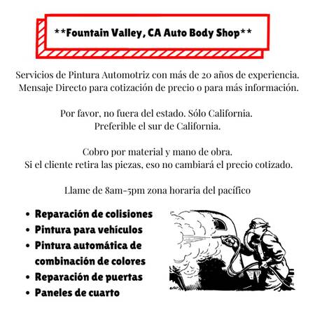 Servicios de Pintura Automotriz con más de 20 años de experiencia. Mensaje Directo para cotización de precio o para más información.
