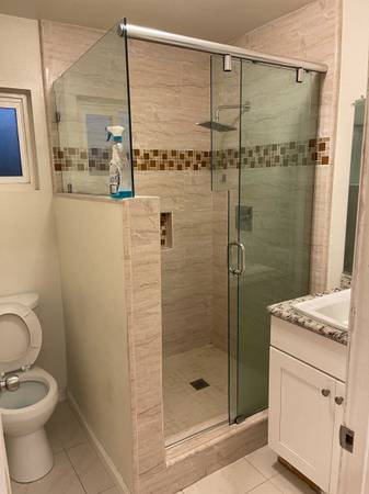 Master bedroom with laminated floor, full size closet with wall height sliding mirror doors, large size windows and pool view. Full bathroom with standing shower, rain shower head, brand new sufficient vent. Studio size with kitchen and private bathroom.