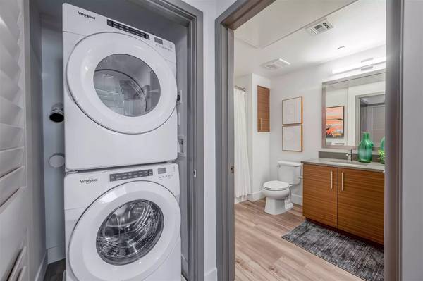 APARTMENT HOME FEATURES: ✓ Additional storage space ✓ Air conditioning with programmable thermostat ✓ Ceiling fans ✓ In-home washer and dryer ✓ Oversized closets ✓ Private balcony or patio ✓ Smart thermostats ✓ Stainless steel appliances including built-in microwave, refrigerator, and dishwasher ✓ Wood-style plank flooring
