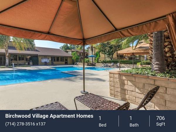 Paradise awaits you at Birchwood Village Apartment Homes in Brea, California! Our warm and inviting apartment community is conveniently located in Orange County, California. The city of Brea has been named one of the five best places to live and you can enjoy that luxury and reap all the benefits when you join us at Birchwood Village Apartment Homes! Enjoy being in close proximity to a superb selection of shopping, fine dining and the best entertainment that Southern California has to offer! Choose from an impressive selection of newly remodeled one and two bedroom apartment homes that have been meticulously designed with your comfort and convenience in mind! All of our residents can enjoy access to our resort-style swimming pools, resident clubhouse, fitness studio, BBQ and picnic areas and sports courts. Visit Birchwood Village Apartment Homes today or browse our photo gallery and find out why our community is the perfect place to call home!