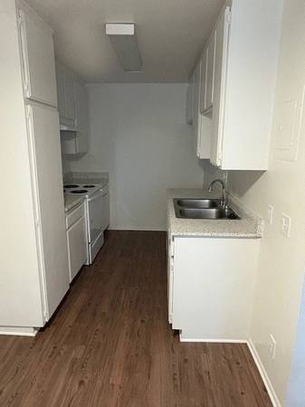 Step into a sun-filled home featuring beautiful vinyl wood floors and carpet, a full-size kitchen, a cozy dining area, and two spacious closets—a perfect blend of style and functionality.