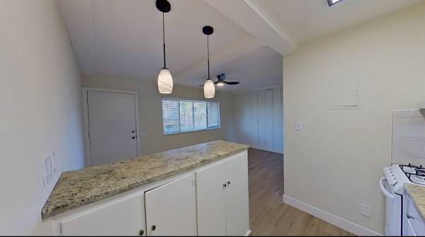 This is a stunning 1-bedroom, 1-bath apartment in a peaceful, family-friendly neighborhood on 336 E 20th St, just under 10 minutes from the beach! Step into a spacious living room with beautiful flooring and a large window that fills the space with natural light. The open layout flows into a stylish kitchen equipped with a stove, oven, and refrigerator, featuring elegant white cabinetry, sleek countertops, and a bar-style counter for casual dining.