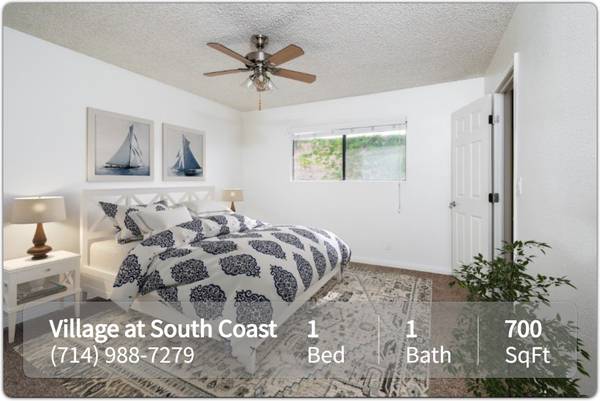 Property Description: At The Village at South Coast you will discover a community conveniently located in a tranquil park-like setting, just steps away from the fast-growing area of Costa Mesa (Sobeca) and South Coast Metro, enjoy live theatre at nearby South Coast Repertory or the Orange County Performing Arts Center. We are located a short walk from many boutiques, specialty shops, and restaurants at The Lab, The Camp, South Coast Plaza and Metro Pointe. We are next to the 73 Toll, 55, and the 405 freeways, placing you just minutes away from John Wayne Airport, shopping, entertainment, and walking distance to schools.