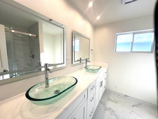 Beautiful newly renovated home with a huge private garden in much desired Costa Mesa/ Newport Beach. Close to 17th St shops and Triangle Square and parks. Bike to the beach ! This 4 bedroom, 2 bath home with garage and off street parking is ready now for move in. New stainless appliances comes fully equipped with gas stove, microwave, dishwasher, large refrigerator, granite counters and ample cupboards. Dining table and chairs can be accommodated in the kitchen area . Large seperate laundry room with new washer and dryer. Large foyer upon entry allows for privacy with 2 bedrooms sharing one bath with walk in shower and the other could be a very nice master bedroom with walk in closet with bedroom access to the garden and optional 4th bedroom or large office or den. Primary large bathroom has double sinks and large walk in shower.