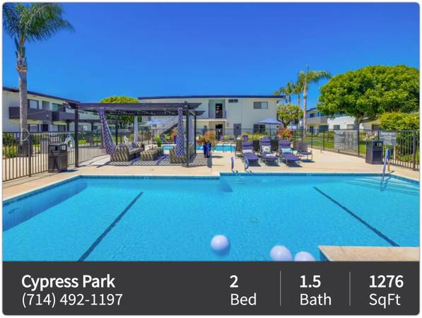 ● 24 Hour Availability ● Assigned Covered Parking ● Business Center ● Courtyard ● Detached Garages Available ● Lush Landscaping ● Townhomes with Yard Available ● Built in BBQ with Entertainment Gazebos ● Cardio and Free Weight Fitness Center ● Clubhouse with Billiards and Foosball ● Located Near Great Dining, Shopping, and Entertainment ● Near Cypress College and Cypress High School ● Near Major Highways, 22, 5, 91, 405, & 710 ● On-Site Community Laundry Rooms ● Two Pools with Large Sun Deck