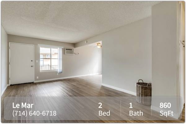 At Le Mar Apartments, we've taken care of all of your needs. Our spacious and inviting apartment homes were designed with you in mind; there's something for everyone at Le Mar. Our great apartment amenities feature air conditioning, covered parking, a dishwasher and microwave, including so much more! Le Mar Apartments offers residents a lifestyle of comfort and convenience.