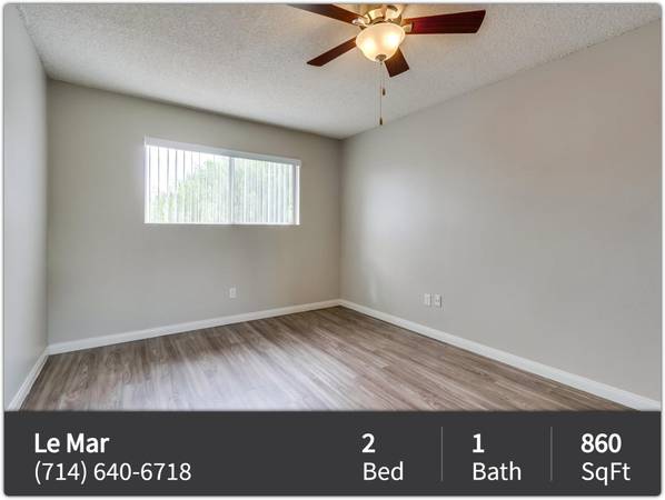 Description: Great apartment home living extends past your front door. That's why we've crafted our community to accommodate you! We are proud to include beautiful landscaping to kick back and enjoy. We also offer a laundry facility for your convenience and online service requests and maintenance scheduling department to ensure that all of our residents are taken care of. Our commitment to your comfort and quality of life is second to none. Visit today and see what makes Le Mar Apartments the best-kept secret in Fullerton, California!
