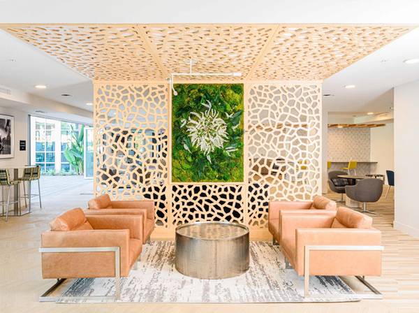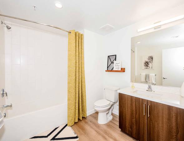 With soaring 9 to 18-foot ceilings and dual pane windows, the living spaces feel bright and airy. Residents can relax in the oversized soaking tubs or socialize in the indoor/outdoor lounge with game tables and pool cabanas.