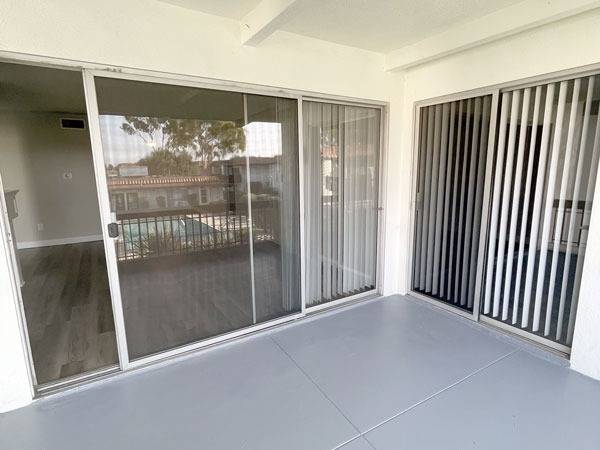 Fenced in patio with sliding glass door