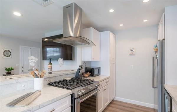 Great beach house! End unit in Surfside with tons of privacy, 1 bedroom/1 bathroom, walk-in closet, with slider that opens to large side yard to enjoy BBQ’s, beautiful sunsets and star gazing. Open concept with upgrades throughout; kitchen has been beautifully remodeled with quartz counter tops, designer backsplash, gas range, modern hood vent, deep stainless-steel sink, and luxury vinyl plank flooring. This home has a 2-car garage with roll-up door and washer/dryer hook-ups with easy access. These units rarely come on the market, walk to the beach, two pools, basketball court, playground, and lots of sidewalks for evening strolls or bike to beach!