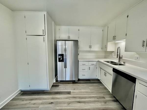 The unit has new floors, carpet, paint, blinds, and appliances. It also comes with a garage. There are common laundry facilities at the property and a marble fireplace in the unit. No Pets, please.
