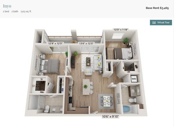 The total rent is $3440/month so I'll be paying $2140/month and you will be paying $1300/month plus $100 a month in utilities. My rent also gets me the assigned parking spot on the 4th floor of the garage. Your parking will be in the "unassigned" sports in the basement or on the room of the parking structure. If you decide to move in, you will need to apply and be approved through the apartment management company.
