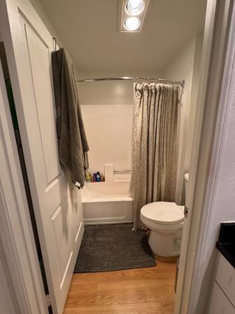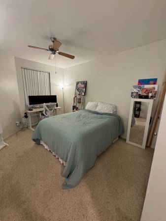Hello! I'm looking for someone (gender: F) to take my place in my current apartment. You would have a private bed and a private bathroom in a shared 2bd 2ba apartment with one roommate (gender: F).