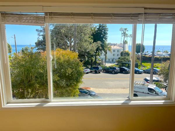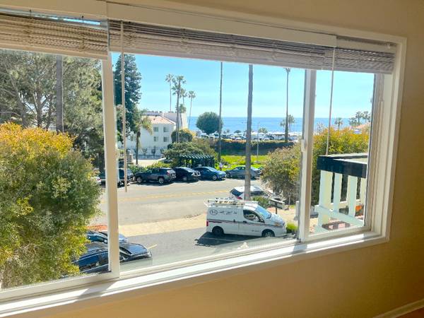 This charming top floor 1 bedroom apartment has stunning ocean views visible from the large living room window. Located in a picturesque small beach building in Laguna, the apartment is very close to the water and offers a serene coastal living experience. The apartment is situated in the best part of Laguna, you can easily walk to all the finest dining and shopping options the city has to offer. It is just a couple of doors down from the Urth Cafe and Las Brisas, two popular and well-regarded eateries. Additionally, Jahraus Park and Main Beach are right across the street, making it a convenient location for those who enjoy outdoor activities and the beach lifestyle. Inside the apartment, the bright hardwood floors lighten up and enlarge the space. The ceiling fan helps to keep the unit cool and comfortable. Laundry facilities located on site. One parking space available for $95/Month.
