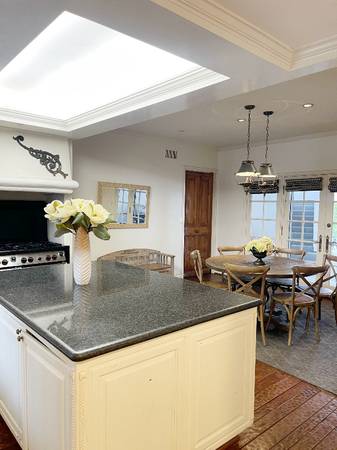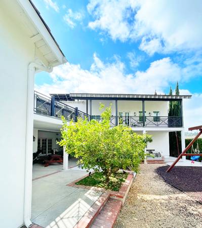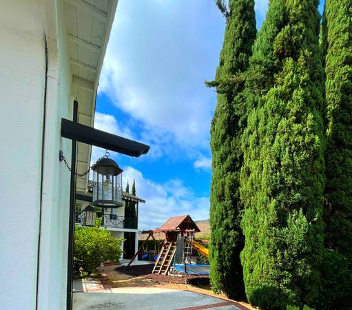 This estate features imported French ornamental doors and staircase railing, a 17th-century mantle, and rich teak wood floors. The home features three bedrooms, two of which include walk-in closets and an office. An additional fifth room can be used as a bedroom, gym, or bonus space. The property also includes 4 full bathrooms. Set on one acre, the property includes fruit trees, large pool, 16-foot waterfall, patios, solar and terraces. Outdoor amenities include a large playground, grass areas for children, RV area, plus a two-car garage. The home is fully furnished. This lease is for the main residence (4,500 square feet) within a larger multigenerational compound. Two adjoining in-law units in the first floor and one studio in the second floor are part of the property and will be used throughout the year. All have their own independent entrances so that privacy is maintained. Situated on a private drive, close to the freeway, beaches, and the historic San Juan Mission.