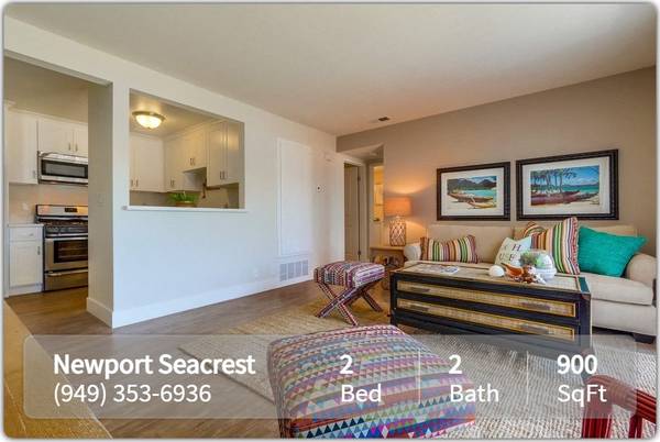 Description: Welcome Home to Newport Seacrest Apartment Homes. Live in one of the most prestigious neighborhoods; walking distance to the ocean in the heart of Newport Beach. Enjoy the cool ocean breeze from the patio of your Newport Seacrest Apartment. Everything you ever wanted from beach living is just down the street: go surfing, walking, jogging, cycling, or sun bathing. Your surrounded by world class restaurants, shopping, and entertainment.