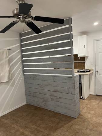 Back house located in landlords backyard. Looking for someone who is calm, quiet, does not smoke or drink. Looking for someone to respect the place like a family home. No parties or overnight guests. The back house is a large room with a kitchenette with sink, countertops and two hot burners but no oven. Cabinet pantry space and a small refrigerator (individual size). It has its own bathroom, shower and small patio area for your enjoyment. She is looking for a quiet, calm, non drinking individual who will respect the space as a family home. It is ideal for one person but two can make it work. No overnight guests. Internet connection is available through spectrum and setup cost would be the responsibility of the renter. Electricity is 40% of the bill charged.