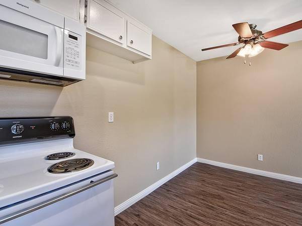 ✓ Studios, full size kitchen with Electric stove, microwave, dishwasher