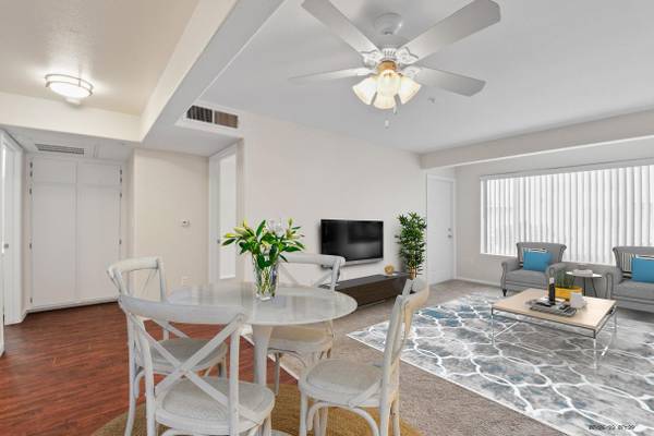 Units are newly renovated and amenities include kitchen appliances, plank flooring, carpeting, ceiling fans, and a private patio or balcony. Parking is also provided.