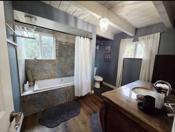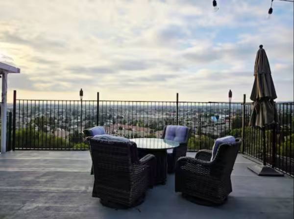 “Experience hillside living in this beautiful two-story Orange County cottage. Enjoy breathtaking sunsets, sparkling city lights, and nightly Disneyland fireworks from your private balcony. With two bedrooms, two baths, and a fully equipped kitchen, this peaceful retreat offers luxury, comfort, and convenience close to beaches, LA, and Palm Springs.”