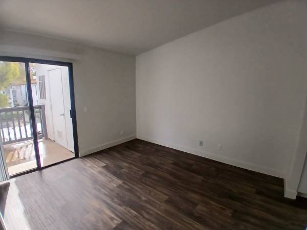 SPACIOUS 795 SF 1 bedroom 1 bath downstairs corner unit open floor plan upgraded stainless steel appliances, upgraded cabinets, upgraded quartz counters, farmhouse sink, recessed lighting, kitchen bay window, dining room, large walk-in closet, with full washer and dryer in private laundry room included on patio with full washer and dryer in private laundry room included.