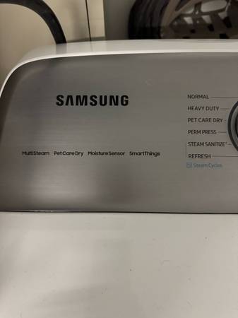 Less than two years old Samsung Dryer with Pet Dry option. Everything is functioning and the condition is excellent. We moved from Texas and the house we moved in the dryer requires gas. The house doesn’t have 4 prong inlet. Originally we bought this for $1200 less than two years ago.
