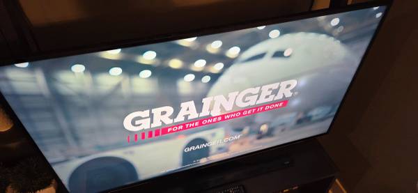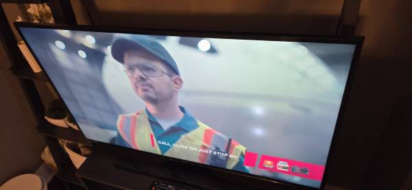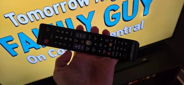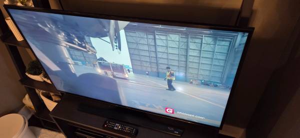 Works but please see pics has 2 bright spots the size of ping pong balls. Power cord and remote included. If you are handy at fixing tvs this is a deal!