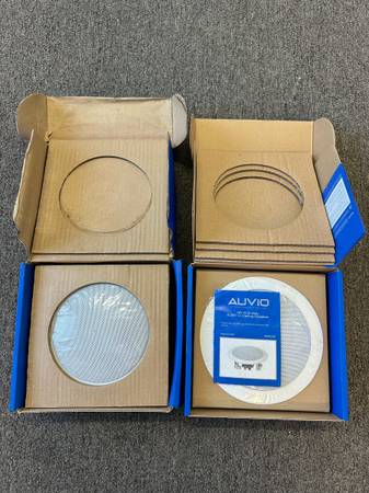 Brand new never installed. 5.25” AUVIO 40W 2-way in-ceiling speakers. Great for home audio, whole home system, bathroom ceiling, office, kitchen, or intercom upgrades. Both boxes complete.