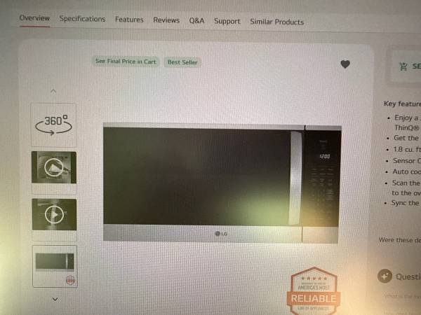 Purchased a year ago for a rental but didn’t work out so never used. Currently on sale at LG for $270. Dimensions are on the last photo and other info can be found at the link below....