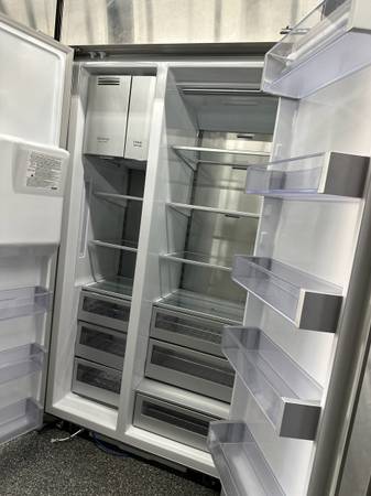 Dacor Built in Refrigerator 42” wide stainless steel side by side Water & ice on door Led lighting // energy efficient Working great no issues Adjustable shelving Store warranty included ++ SAME...