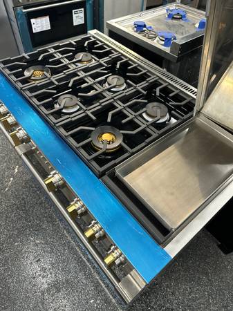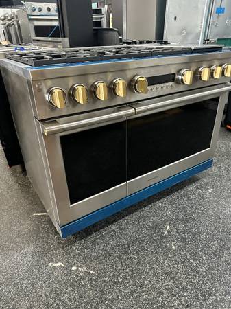 Ge monogram freestanding range Stainless steel / 48” wide All gas / griddle Working great no issues High end model with led illuminated knobs Convection oven Statement series high end model Store...