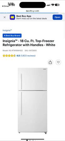 Purchased new for $600 at Best Buy in May. Excellent condition. Moving and no longer need it! The handles can be reinstalled onto the other side to open in the opposite direction if desired. Pick up from 12/10/25-12/14/25 won’t be available until then