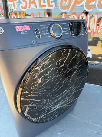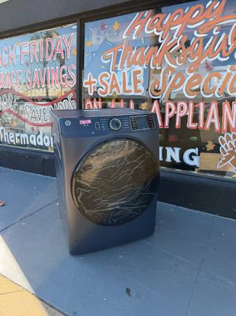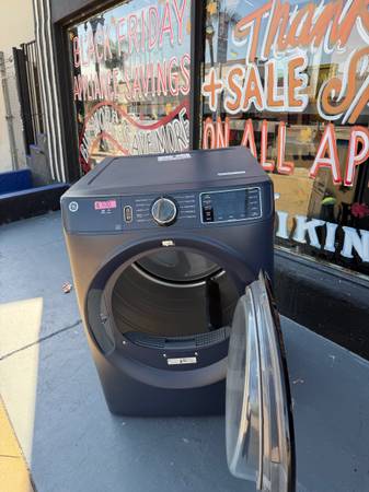 new open box model Warranty included Delivery available One left Open daily Ge front load gas dryer Matte blue sapphire blue 7I4 98I 33…//four.///three