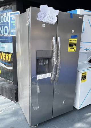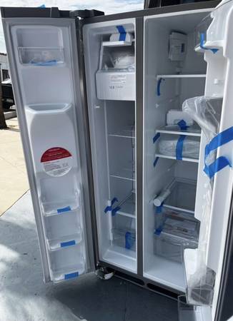 New 2025 model Never used Small ding under dispenser doesn’t affect nothing just cosmetic Warranty included Delivery available 33 inch wide apartment size compact side by side 6I9 65O 949Six