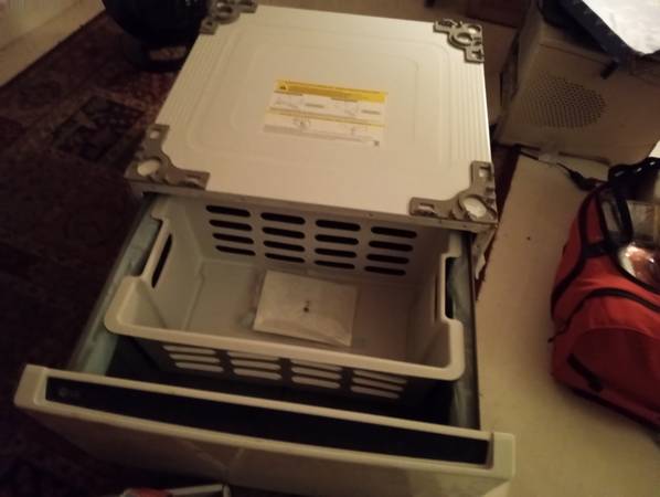 LG washer and dryer bottom platform for elevation of appliances. In good condition and the door pulls out smoothly. White color. Must pick up and cash or credit card only.