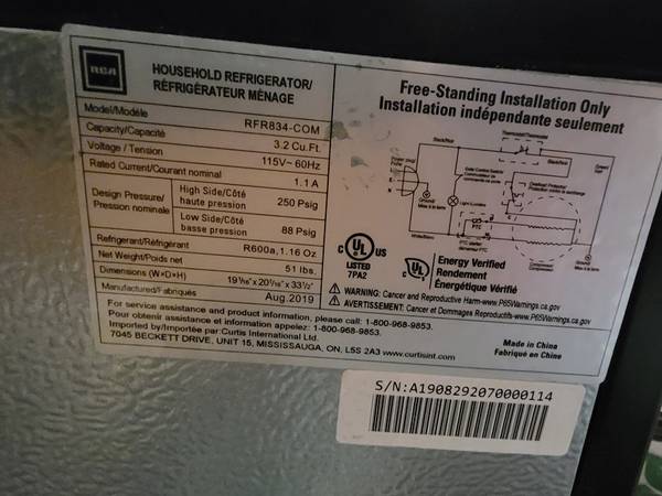RCA Mini Refrigerator RFR-834-COM – ONLY $175.00 OBO