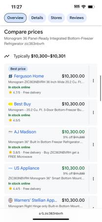 Monogram 36” Bottom freezer Ice maker Panel ready Call or text 949—6 eight 9—5001