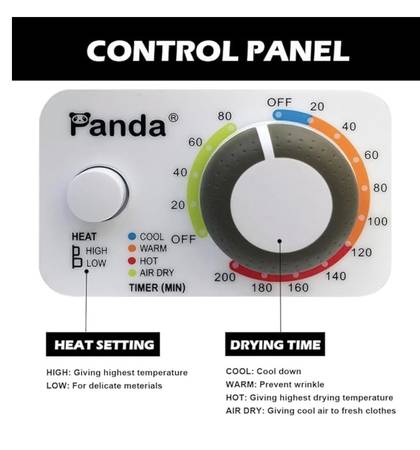 1). Panda Apartment Dryer 1.5 cu.ft. 110-Volt Compact Portable Electric Laundry Dryer, White and Black