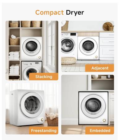 No window or outdoor connection needed with the “Indoor Dryer Vent” included free