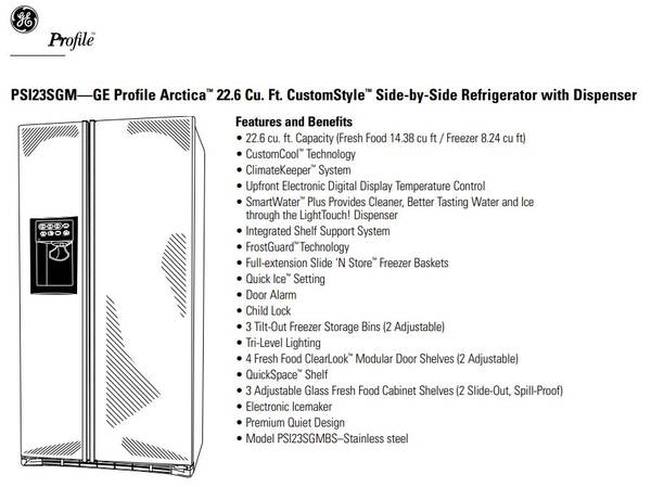 22.6 Cu. Ft. Stainless Side-By-Side Refrigerator