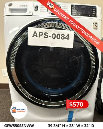 For sale: GE GFW550SSNWW 4.8 cu. ft. front load washer in white. Fully inspected, tested, and ready for immediate delivery.