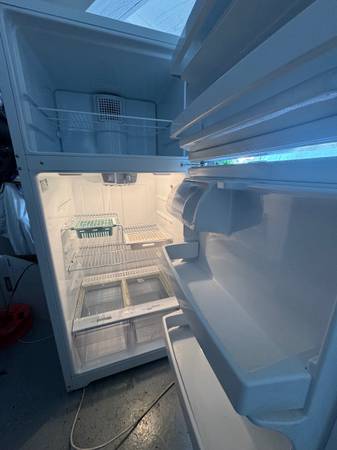 Refrigerator GE, white , freezer, working perfectly.standard size. T64,W28,D30.Moving sale- Local delivery available extra.