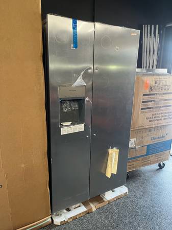 Frigidaire Side by side Ice and water 36” wide LED lighting New open box Call or text 949—68 nine —-5001