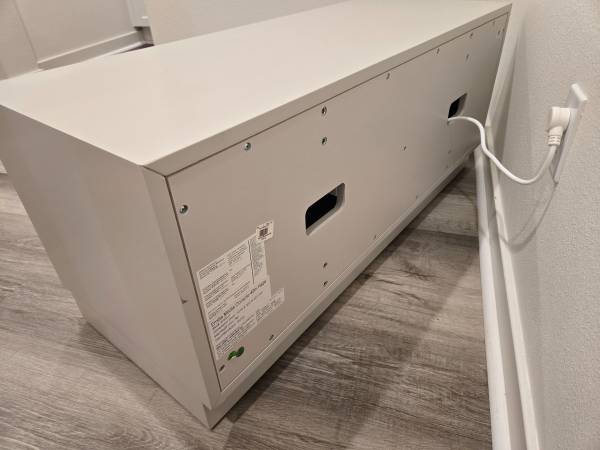 Super clean openbox condition. Decided to upgrade to something bigger. Paid 800 + tax + shipping couple years ago. Glass front doors, 2 level shelves eash side with adjustable height. 40W, 16D, 17H...