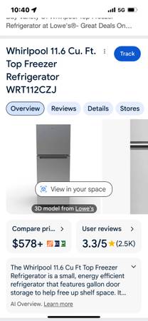 Whirlpool 11.6 Cu. Ft. Top Freezer Refrigerator WRT112CZJ