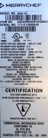 Used Merrychef eikon E3 High Speed Countertop Microwave Convection Oven, 208/240/1ph. Manufacturer on November 2017. Oven in great working condition and has been tested, serviced and cleaned. Item has small scratches and marks from normal use. Please loop at all the photos and feel free to ask any questions. In good working condition. Text me @ show contact info