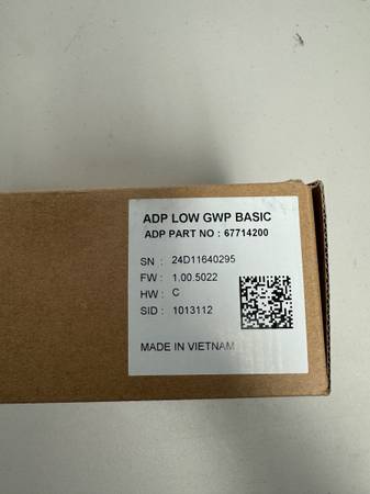 Brand new ADP LOW GWP BASIC Control Board, Part Number 67714200, P/N 107970-01, firmware version 1.00.5022. This factory-sealed module is designed for advanced control and monitoring in low-GWP (Global Warming Potential) HVAC systems. It ensures efficient operation, zoning, and safety management for compliant HVAC configurations.