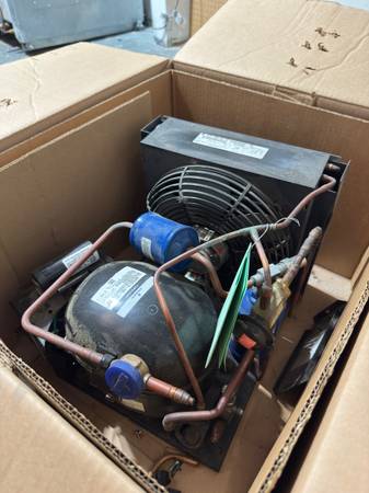 High-quality Emerson Copeland OEM refrigeration condensing unit, complete with compressor, fan-cooled condenser, and all factory fittings. Ideal for reach-in coolers, prep tables, display cases, and small refrigeration systems.