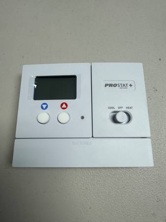 Brand new ProStat+ PSP1100 OEM Series Non-Programmable Thermostat designed for heating and cooling systems. Simple and reliable, this manual-changeover thermostat is ideal for single-stage applications and compatible with gas, electric, and heat pump systems that do not use auxiliary heat. Perfect replacement option for many Goodman and other standard HVAC systems.