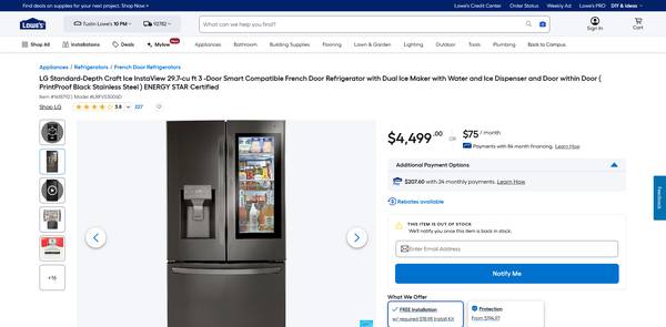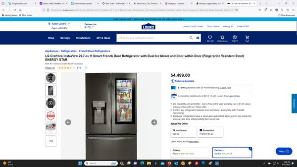 BLACK STAINLESS STEEL LRFVS3006D LG 30 cu. ft. Wi-Fi Enabled InstaView Door-in-Door Refrigerator with Craft Ice Maker. 33" DEEP and 36" WIDE. I HAVE ONE IN STOCK TODAY. NORMALLY $4499 plus $360 in tax TOTALING $4859. I HAVE ALREADY PAID THE TAX. Total price is $2995
